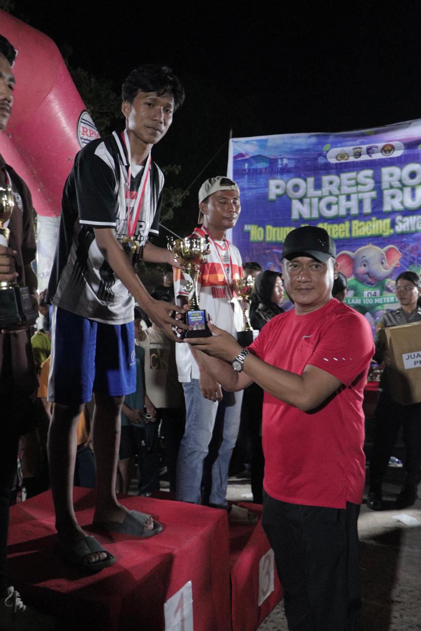 Kemeriahan semakin memuncak saat memasuki sesi pembagian hadiah. Tidak tanggung-tanggung, Polres Rohil menyediakan berbagai door prize menarik mulai dari unit sepeda, peralatan rumah tangga, hingga bantuan bibit pohon bagi warga. Para pemenang lomba lari pun berhak membawa pulang trofi, medali, dan uang pembinaan sebagai bentuk apresiasi atas prestasi mereka.