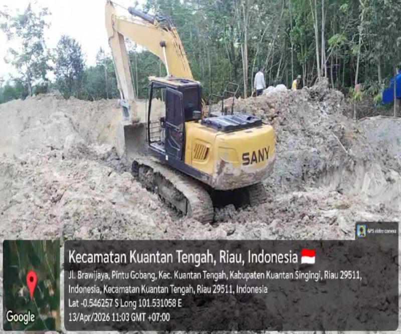 Pantauan di lapangan pada Rabu (15/06/2026), sebuah pemandangan mencengangkan terlihat di Batang Punggai, Kenegerian Kari, Kecamatan Kuantan Tengah. Hanya berjarak sekitar dua meter dari bahu jalan aspal yang menghubungkan Desa Pintu Gobang Kari menuju Sungai Piudang, satu unit alat berat jenis Excavator merk SANY nampak asyik mengeruk tanah mencari butiran emas.