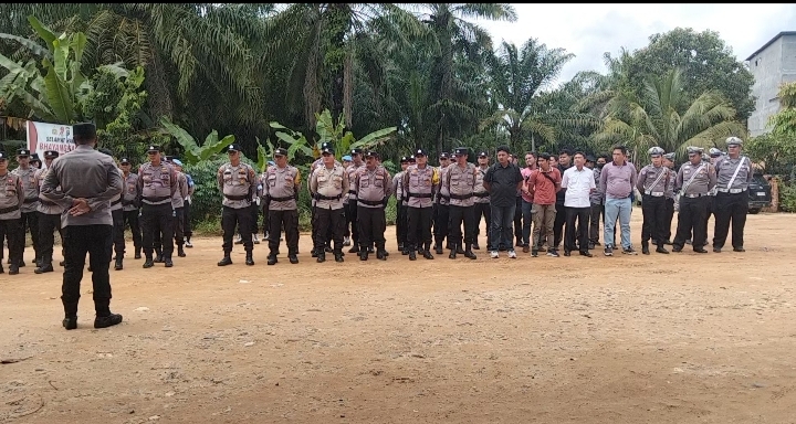 BAGAN SINEMBAH, RIAU — Jajaran Polres Rokan Hilir bersiaga mengamankan rencana aksi damai yang akan dilakukan masyarakat bersama Koperasi Al Masri di depan pintu gerbang SP3 Kabama Kilometer 37, Kecamatan Balai Jaya, Kabupaten Rokan Hilir, Riau, Kamis (18/12/2025).