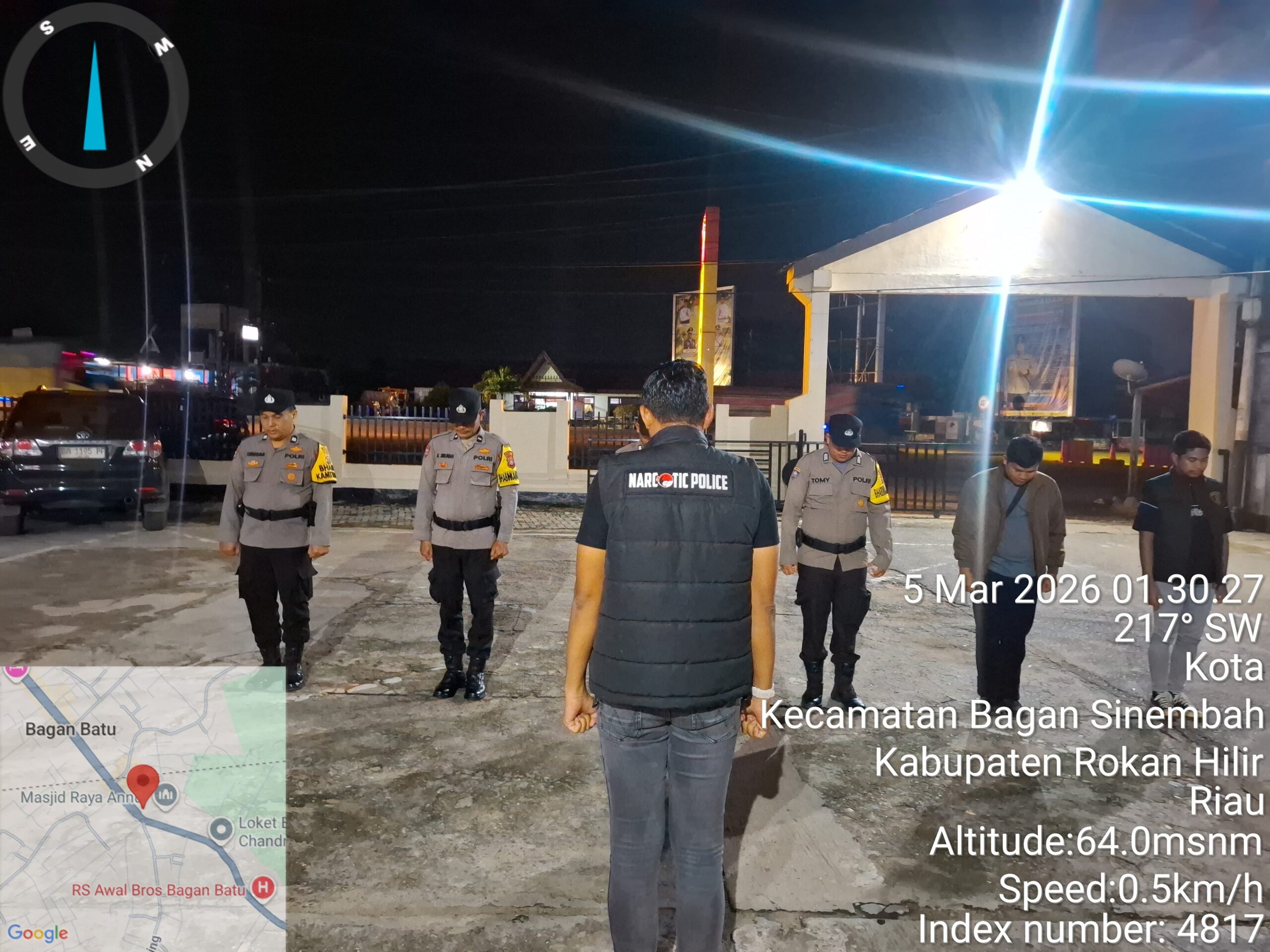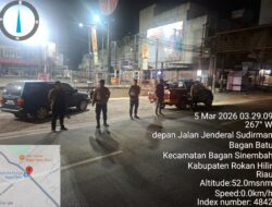 Rokan Hilir – Dalam rangka menjaga situasi keamanan dan ketertiban masyarakat (Kamtibmas) tetap aman dan kondusif di bulan suci Ramadhan 1447 H, Polsek Bagan Sinembah melaksanakan Kegiatan Rutin Yang Ditingkatkan (KRYD) berupa Patroli Blue Light, patroli dialogis, patroli C3 (Curat, Curas dan Curanmor) serta patroli antisipasi balap liar, Kamis (05/03/2026) dini hari.