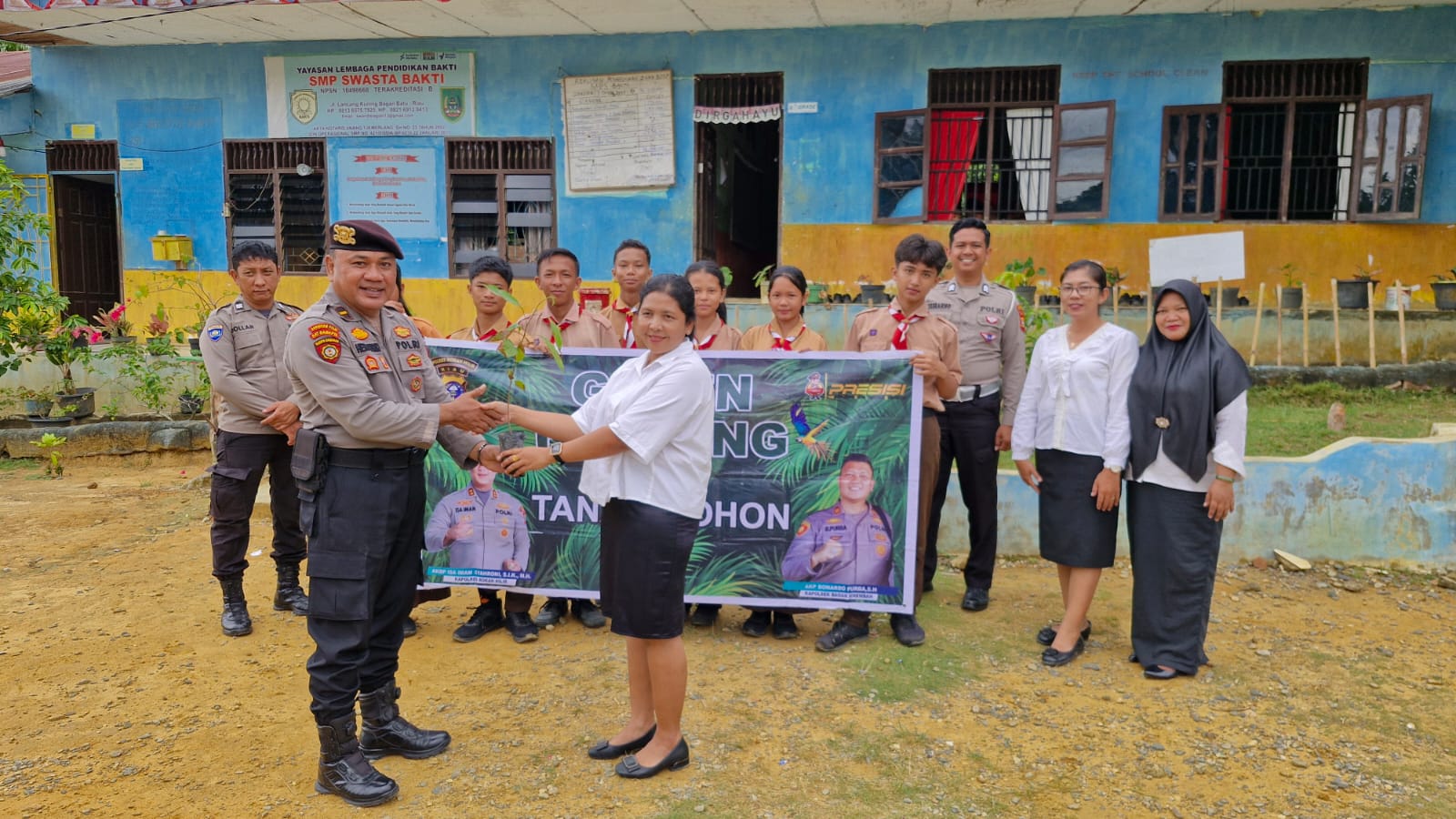 Bagan Batu, Rokan Hilir – Polres Rokan Hilir (Rohil), melalui Polsek Bagan Sinembah, menggelar sosialisasi program Green Policing dan penanaman bibit pohon di SMP Swasta Bakti Bagan Batu, Kecamatan Bagan Sinembah, pada Selasa (11/11/2025). Kegiatan ini merupakan implementasi kebijakan Kapolda Riau dalam menjaga ketertiban sosial dan keberlanjutan lingkungan hidup.