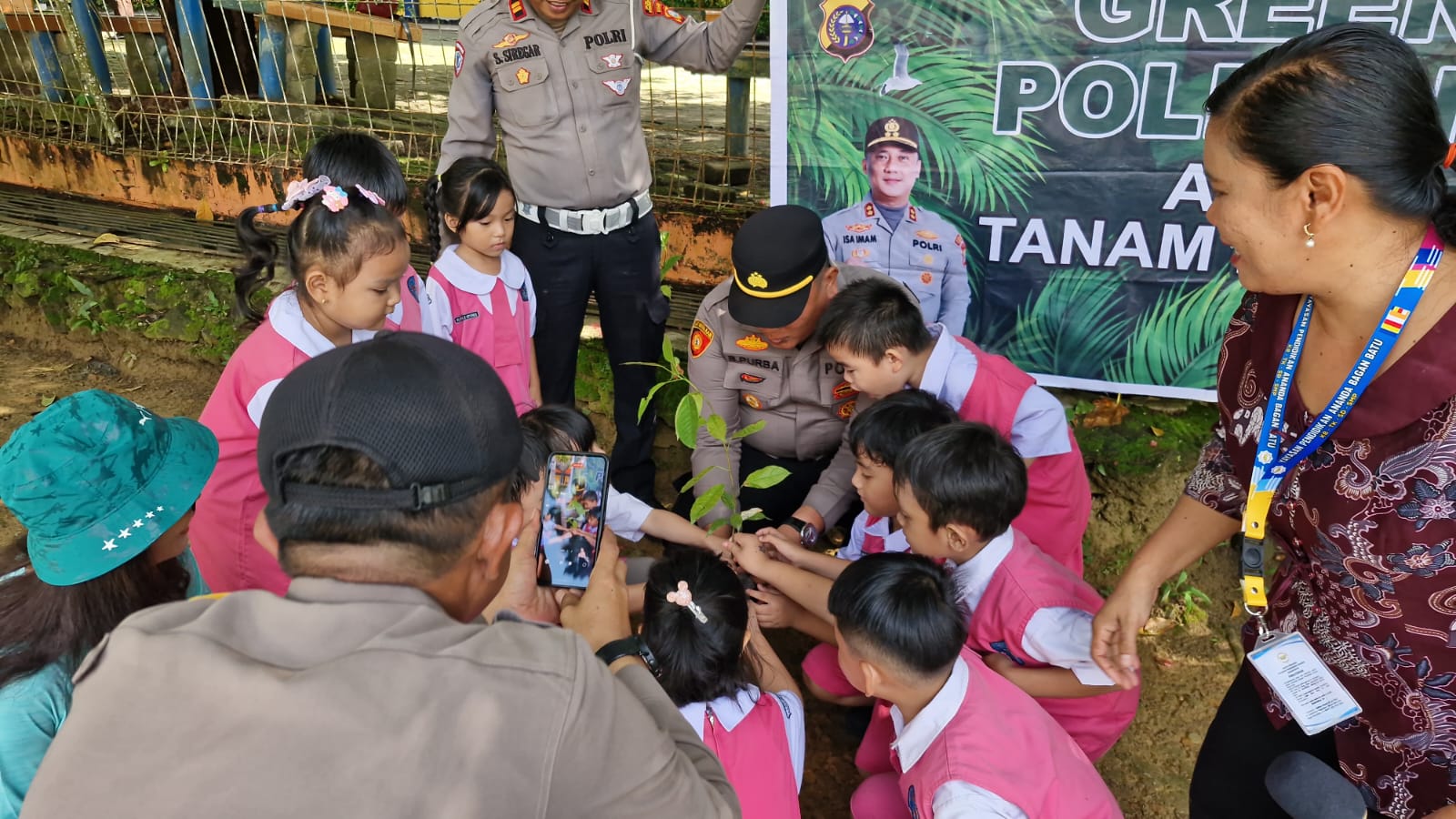 Acara yang dimulai pukul 09.30 WIB ini dihadiri oleh Kapolsek Bagan Sinembah AKP Bonardo Purba, SH, Panit I Lantas Polsek Bagan Sinembah IPTU S. Siregar, SH.,M.Si, personil Polsek Bagan Sinembah, serta pihak sekolah TK Ananda. Sebanyak 2 batang pohon Matoa ditanam di lingkungan sekolah.