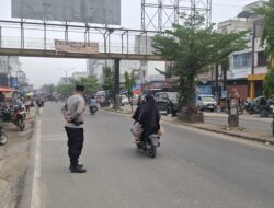 Dalam pelaksanaannya, personel terlihat aktif membantu kelancaran arus kendaraan, menyeberangkan masyarakat, serta memberikan imbauan kepada pengguna jalan agar tetap tertib berlalu lintas.