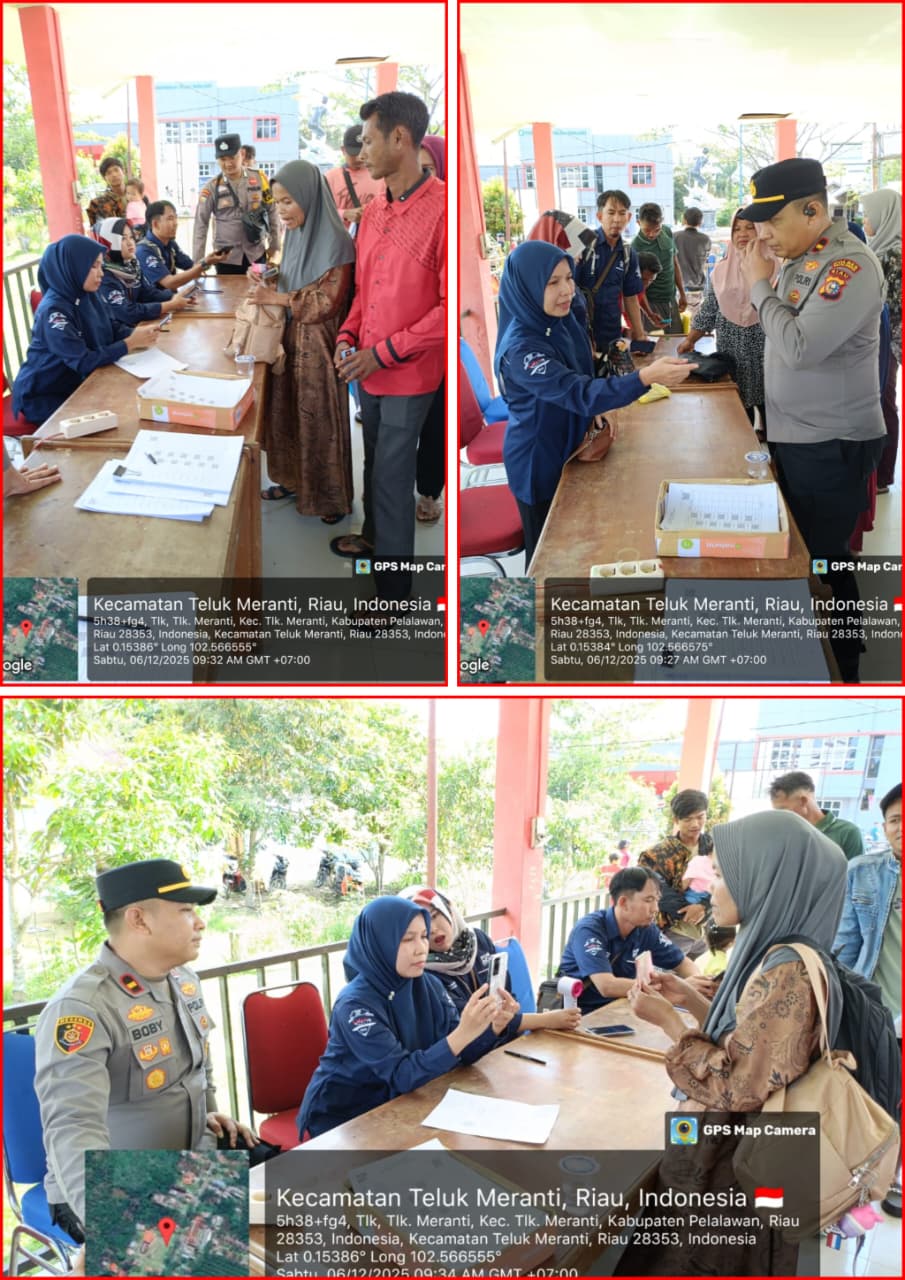Pelalawan – Pada hari Sabtu, 06 Desember 2025, telah dilaksanakan kegiatan Penyaluran Bansos BLT (Bantuan Langsung Tunai) Desember Tahun 2025 Kec. Teluk Meranti di Balai Kesenian Kelurahan Teluk Meranti. Kegiatan ini dihadiri oleh Kepala Kantor Pos Kec. Pangkalan Kerinci Sdri. SRI NOVITA, Pegawai Kantor Kec. Pangkalan Kerinci Sdr. HABIB RAHMAN, Sdri. NOVI YANTI RIAU, Sdr. TAMA, Sdr. FEBRIZAL, Sdr. SEPRIANTO, dan Sdr. BASTIAN, serta Kapolsek Teluk Meranti IPDA BOBY EVEN SH, MH