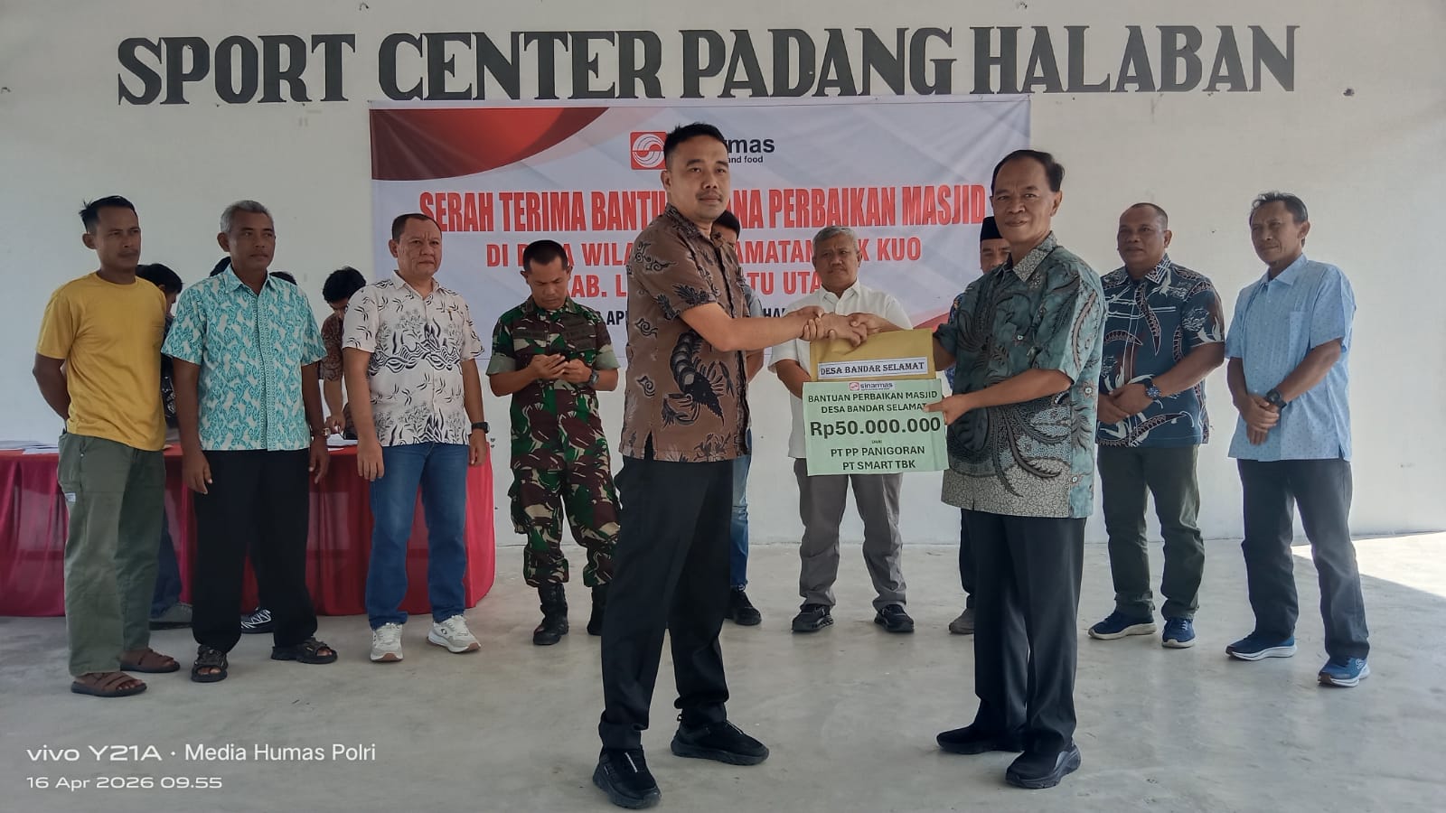 Bantuan yang di serahkan untuk pembangunan Masjid sebesar 50.000.000.itu untuk 7 Desa yakni meliputi. 1 Desa Aek korsek. 2 Desa Padang Halaban. 3 Desa panigoran. 4. Desa Sidomulyo .5 desa Padang Maninjo. 6 Desa. Karang Anyar 7. Desa Purworejo .
