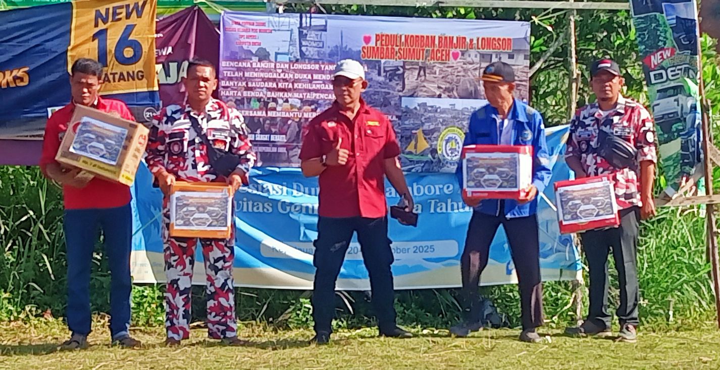 Diwakili masing-masing utusannya, ke-empat organisasi tersebut berjejer berdiri di tepi jalan sambil memegang kotak untuk menampung pemberian bantuan dari para pengendara yang melintas di Simpang Tembeling dan di Bundaran Kilometer 16 Desa Toapaya Selatan Kabupaten Bintan, (05/11/2025).