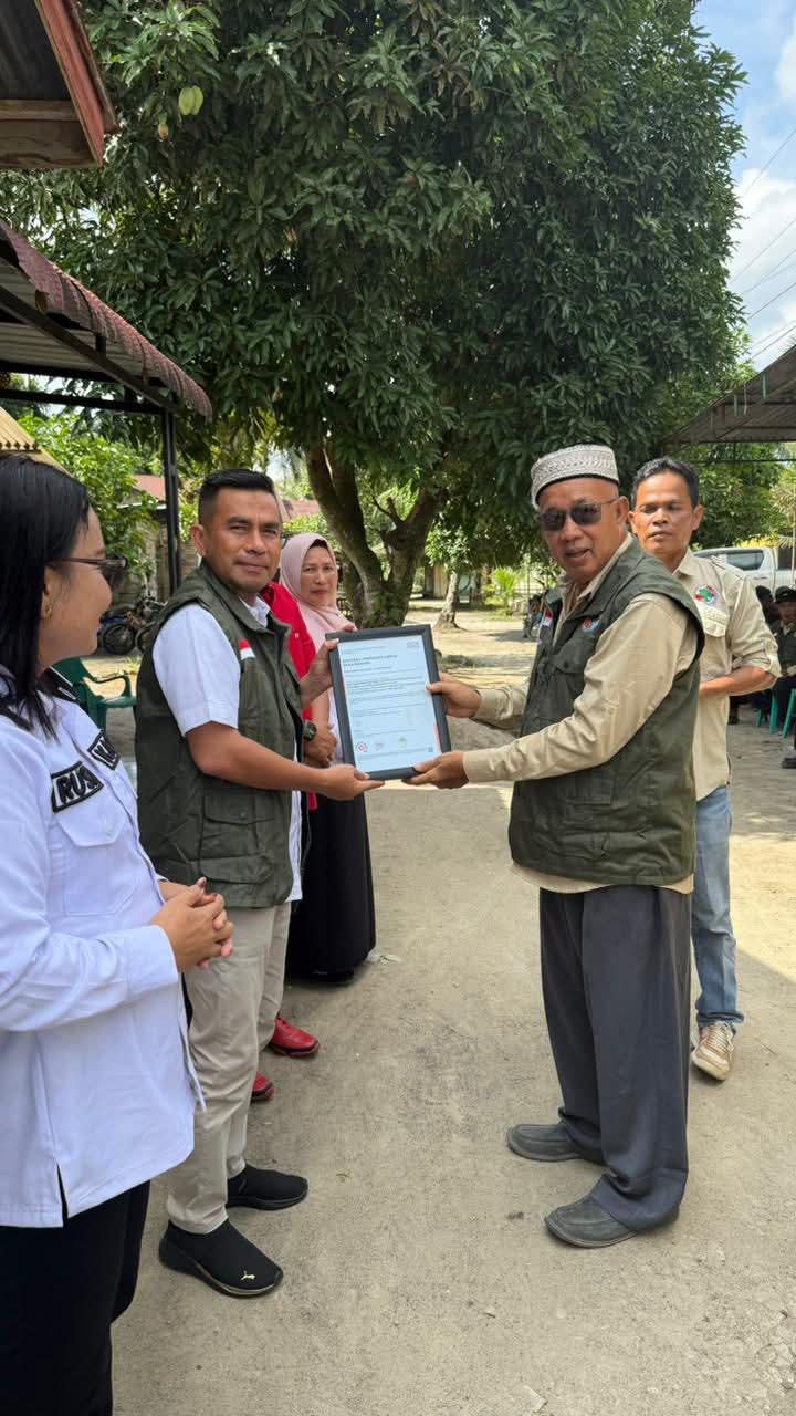 Kabupaten labuhan batu Utara – Wakil Bupati kabupaten labuhan batu Utara Labuhanbatu Utara, Dr. H. Samsul Tanjung, ST MH menyerahkan Alat Pelindung Diri (APD) kepada petani kelapa sawit serta membagikan paket sembako kepada anggota Koperasi Produsen Karya Desa Mandiri di Desa Simangalam, Kamis 16/10/25